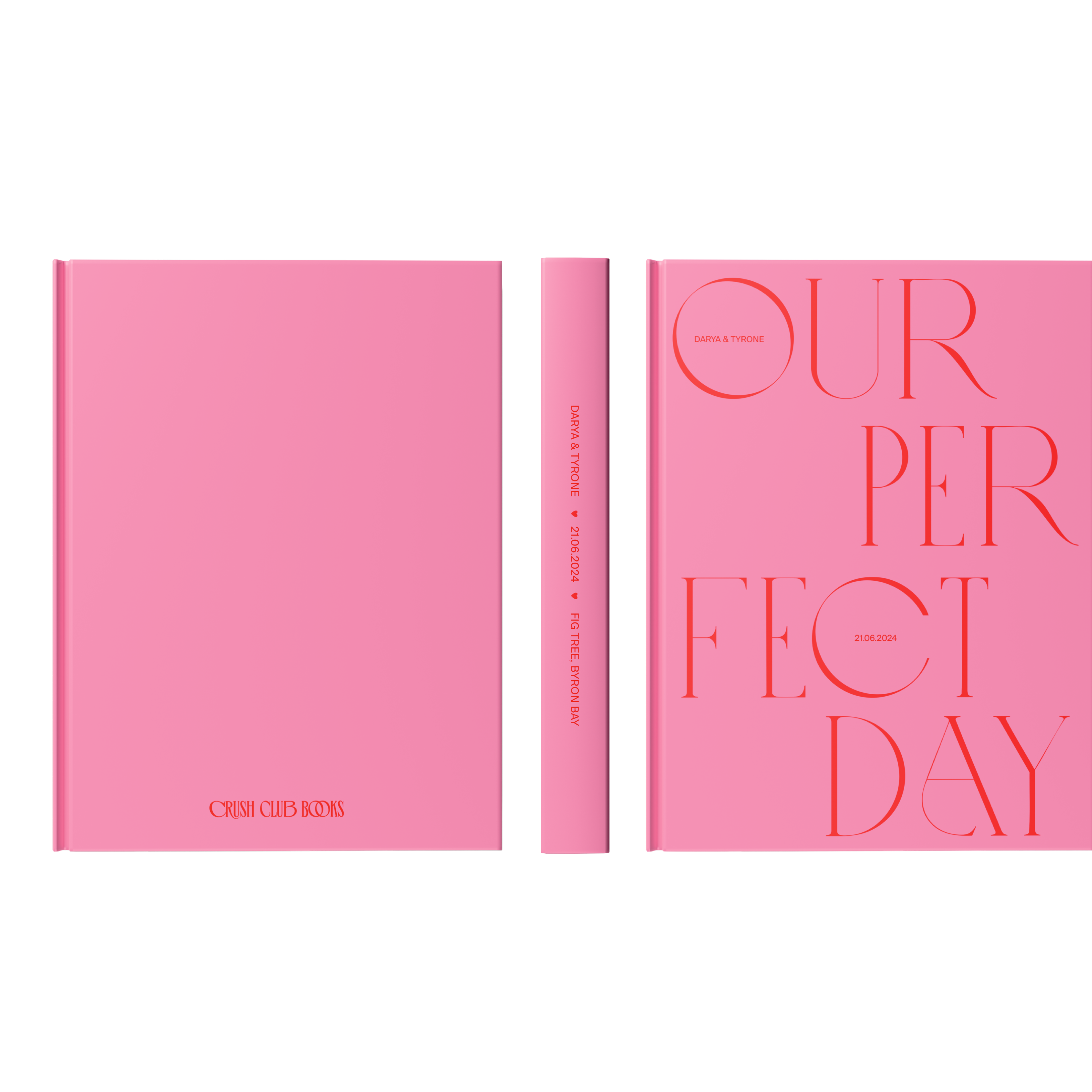 The ready-to-go books (Ready-to-go and New Arrivals) are templates which you can simply change your names, location and date. The Custom Crush Club Service is where we start from scratch and fully customize your design together with a graphic designer.