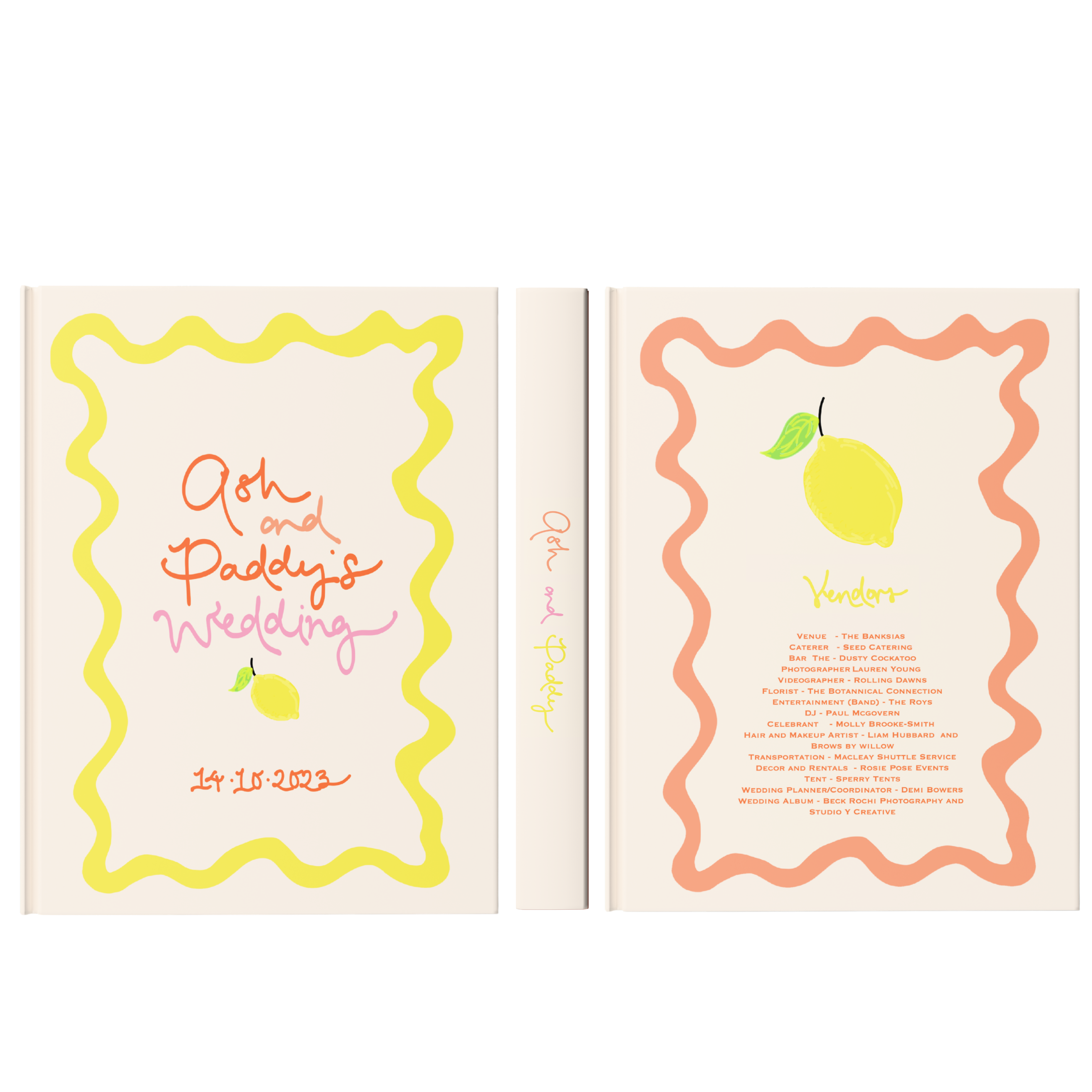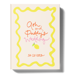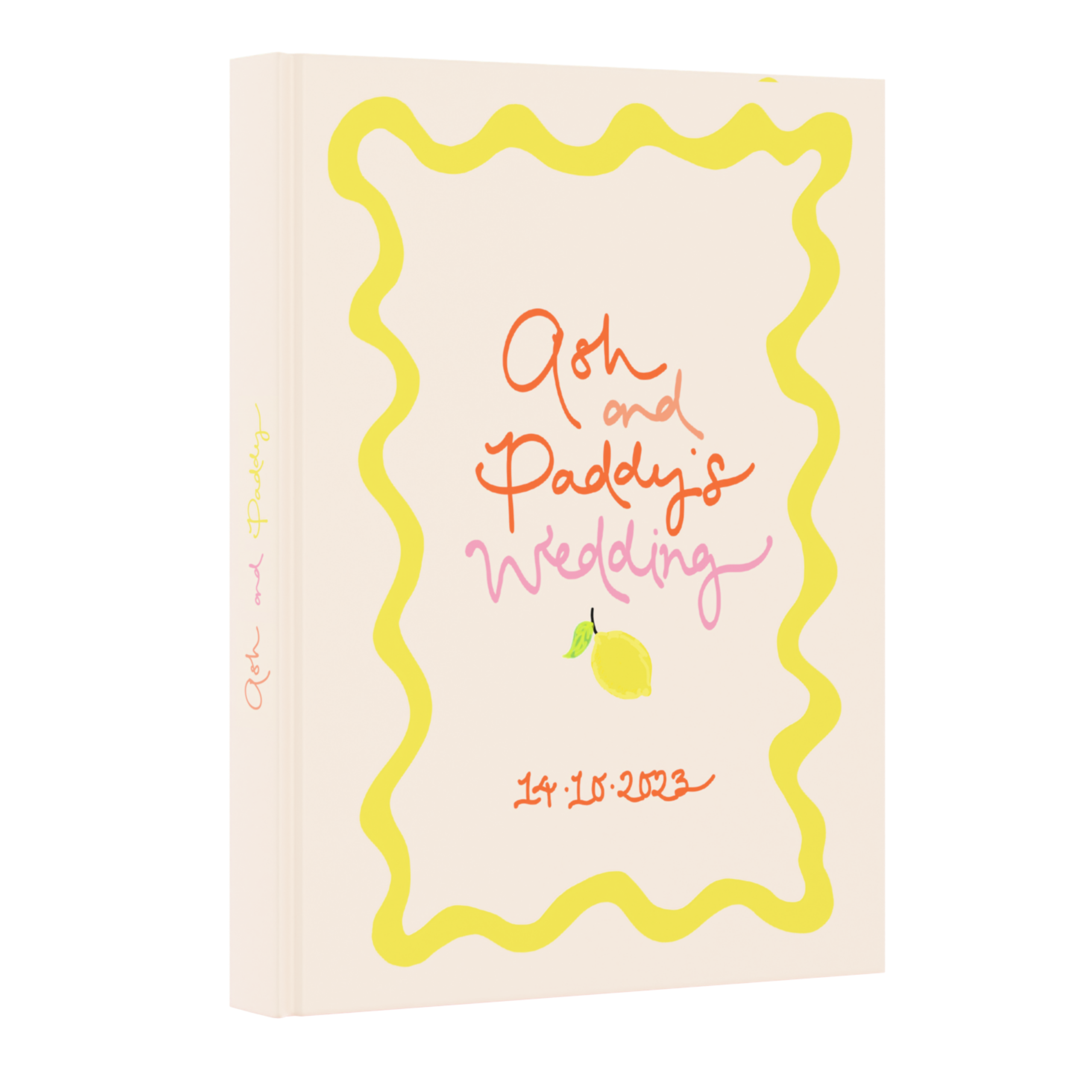 This is a blank (8 x 10 inch) book with nothing on the pages, which you take to your wedding. It sits nicely with your wishing well and any other little wedding favours. If you also have a Polaroid camera, Polaroid film, sticky edges and some fun pens, your guests to get creative and take photos of themselves and write a message to you. You can then look back on their love letters to you in years to come. It features 10 double-page spreads, giving your guests a beautiful blank canvas to work with. You can either select one of our Ready to Go covers or design your own from scratch with our designers!