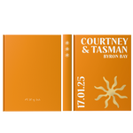 The 'New Arrivals' range is a current collection of covers designed by Crush Club. A new range is released every 6 months. The colours, style and fonts have been chosen to appeal to many and reflect on-trend styles. You can customise these by changing the names, location and date. The 'Ready-to-go collection was covers specifically designed for previous couples who used the "custom" service - but you can have it personalised and reused if you love it!